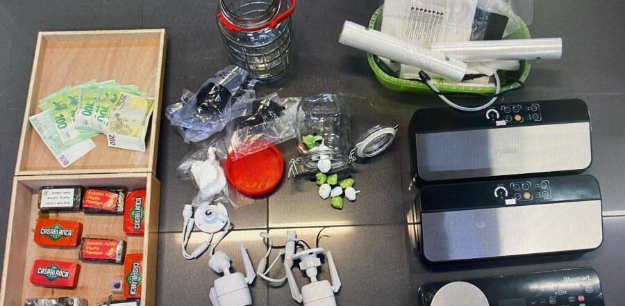 In particolare nel corso di un servizio specifico finalizzato al contrasto, alla prevenzione e alla repressione del traffico illecito di sostanze stupefacenti, gli operatori della Squadra Mobile della Questura  effettuavano una perquisizione domiciliare presso un’abitazione sita a nord della provincia, concentrando l’attenzione presso l’abitazione occupata dall’indagato dove venivano rinvenuti nella sua disponibilità grammi 1.293,64,8 di sostanza stupefacente del tipo hashish, grammi 460,73 di sostanza stupefacente del tipo cocaina, grammi 32,27 di sostanza stupefacente del tipo Ecstasy/MDMA,  banconote di vario taglio per un totale di €1900,00 e materiale utile per il confezionamento tra cui bilancini di precisione e macchine per sottovuoto.