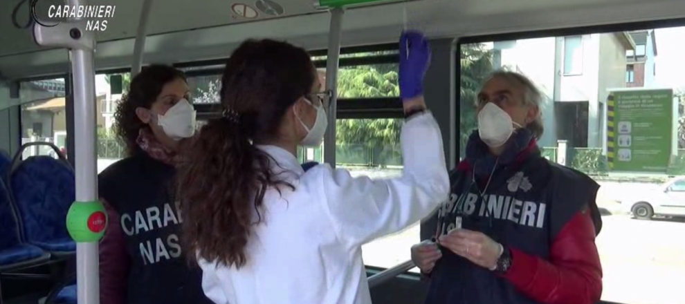 Autobus per il trasporto pubblico in cui sono presenti tracce di covid 19: è quanto hanno riscontrato i carabinieri del Nas nel corso di un servizio di controllo che ha riguardato i mezzi di trasporto di Roma, Viterbo, Rieti, Latina, Frosinone, Varese e Grosseto. In modo particolare i militari del nucleo antisofisticazioni di Latina hanno attenzionato la rete di trasporto urbano pontina e ciociara sulla quale sono state accertate 10 positività su parti comuni di 5 autobus, uno di Latina e 4 di Frosinone, attraverso tamponi eseguiti insieme all’ARPA Lazio sui vari mezzi presi in esame.