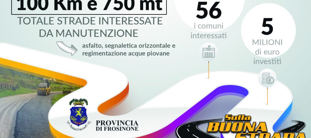 Oltre cento chilometri di strade e cinque milioni di investimento, che hanno toccato i territori di 56 comuni. E’ questo il bilancio del 2024, nell’ambito della manutenzione stradale, da parte dell’amministrazione provinciale di Frosinone. Il tutto grazie al programma che il Presidente Luca Di Stefano ha chiamato “Sulla buona strada”.