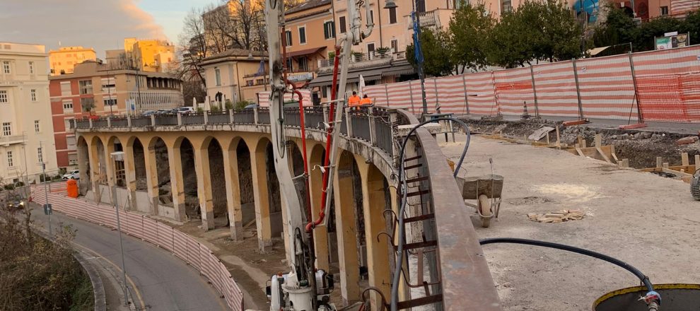 Continuano i lavori di riqualificazione e messa in sicurezza del complesso dei piloni e di Largo Turriziani nella zona alta di Frosinone. Dall’amministrazione Mastrangeli sottolineano come l’avanzamento dei lavori sia monitorato quotidianamente e nelle scorse ore si è svolta una riunione, coordinata dal sindaco, con gli assessori Testa, Sementilli, Rotondi e Retrosi, oltre ai dirigenti di settore e ai direttori dei lavori.