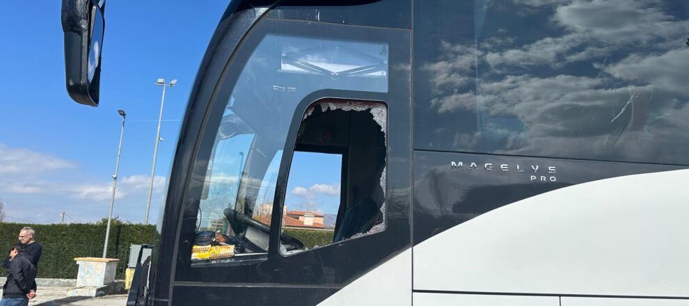 Momenti di tensione e di paura nella mattinata, all’altezza di Sala Consilina, direzione Sud, quando un pullman di tifosi del Frosinone ha avuto problemi tecnici. Il mezzo si stava quasi per fermare, quando è stato raggiunto da una sassaiola che ha costretto il pullman ad una sosta. I tifosi non sono scesi dal pullman. Immediato l’intervento delle forze dell’ordine, per verificare le condizioni dei tifosi a bordo. Non è stato segnalato alcun ferito, solo tanta paura. L’agguato al pullman sarebbe avvenuto per mano di alcuni teppisti facenti parte di un tifoseria organizzata che si trovava in transito nella zona.