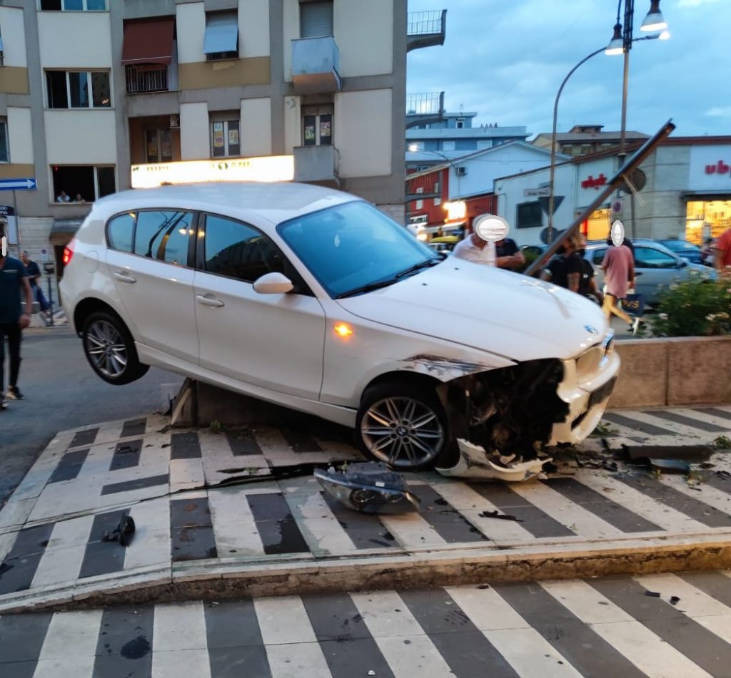 Uno scontro tra due auto sul corso principale di Frosinone, via Aldo Moro: uno dei due veicoli che vola sul marciapiedi finendo in bilico su un’aiuola in cemento. Poteva essere davvero un incidente dalle drammatiche conseguenze: sarebbe bastato che in quel momento, su quel lato del marciapiedi, passasse qualche pedone. La fortuna, o chissà cosa, ha voluto che non fosse così. Nessuno si è fatto male nel rocambolesco scontro che si è verificato lunedì sera intorno alle 20 nel capoluogo, quando le strade ed i marciapiedi erano tra l’altro affollati. Nei pressi di un incrocio, a pochissima distanza dalla libreria Ubik, si sono scontrate una Fiat 500x ed una Bmw: quest’ultima è carambolata sul marciapiedi ed è rimasta incastrata sull’aiuola dopo aver divelto un palo della segnaletica. La buona notizia è che neanche gli occupanti delle due vetture sono rimasti feriti, solo qualche escoriazione: sul posto è comunque arrivata una ambulanza, allertata anche per via della dinamica dello scontro, ma nessuno si è fatto male sul serio. “Un vero miracolo” ripetevano lunedì sera i passanti che si sono trovati di fronte quella scena: se in quel momento ci fosse stato qualcuno a piedi in quel punto staremo parlando di una vera tragedia. Ma fortunatamente non è stato così.