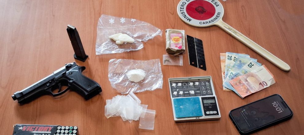 I carabinieri hanno sequestrato 84 grammi di hascisc, 8 di cocaina e 17 di crack. I carabinieri stavano tenendo d’occhio da tempo quell’abitazione, sospettando che potesse essere una base di spaccio ed hanno atteso il momento giusto per intervenire. Hanno trovato anche materiale per il confezionamento delle dosi, diverse centinaia di euro ritenuti provento dell’attività di spaccio e una pistola a salve modello Beretta 92, con 41 colpi.