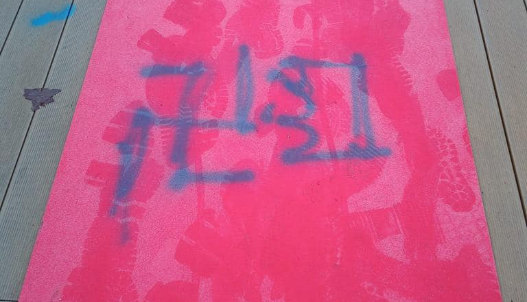 Una svastica disegnata sul tappeto del’isola pedonale nella zona di De Mattaheis a Frosinone.