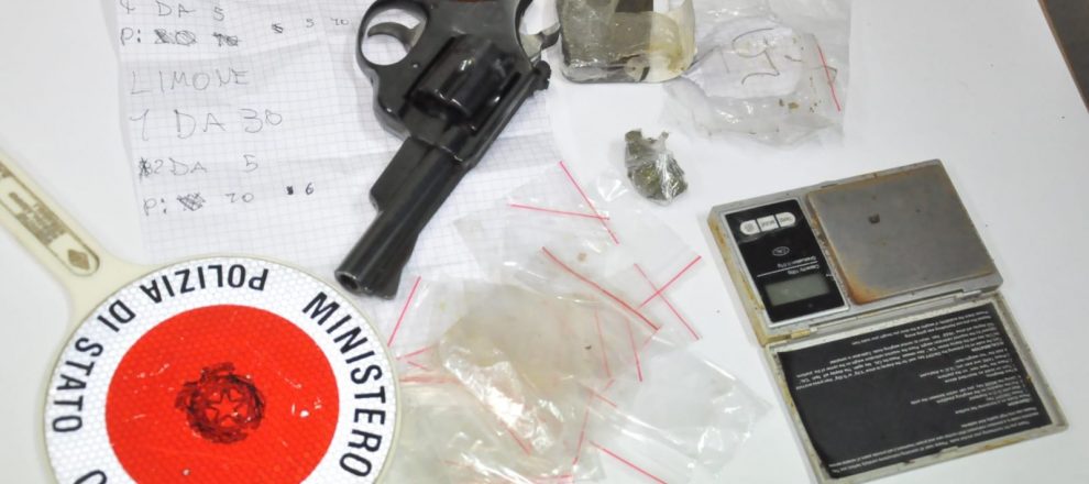 Gli agenti si sono così recati presso l’abitazione dell’ uomo, già noto alle forze dell’ordine per reati di spaccio e residente nel capoluogo. Nella casa, i poliziotti hanno trovato l’arma, un revolver Astra 357, oltre a 120 grammi di hashish, 6 grammi di marijuana, un bilancino e buste per il confezionamento della droga.