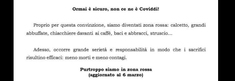 Il suo messaggio parte con una frase ironicamente amara: adesso è sicuro, non ce n’è coviddi! La nota della prefettura di Frosinone sottolinea la drammaticità della situazione che stiamo vivendo, condannando senza mezzi termini gli atteggiamenti adottati da qualcuno nelle ultime settimane. Comportamenti di cui adesso tutti paghiamo le conseguenze.