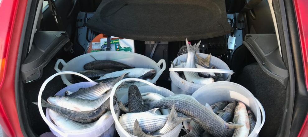 Due giovani pescatori sono stati sorpresi mentre erano intenti a pescare mediante l‘ausilio di reti da posta. Sono stati sequestrati 130 metri di reti e 90 Kg di pescato, prevalentemente cefali.