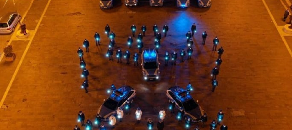 Non sono mancati i trecentonove rintocchi di campane, l’accensione di un simbolico braciere da parte di un vigile del fuoco davanti alla Chiesa di Santa Maria del Suffragio, ed un fascio di luce verso il cielo in Piazza Duomo. Suggestiva la coreografia degli agenti della Questura de L’aquila. Schierati in piazza Duomo con le loro vetture hanno ricreato un’aquila.