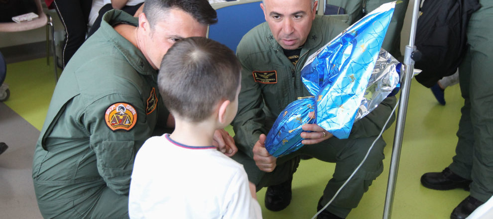 LATINA – 20 APR – Una Pasqua un po’ più dolce quella che vivranno i piccoli degenti del reparto di Pediatria dell’ospedale “Santa Maria Goretti” che hanno ricevuto la visita del personale del 70° Stormo.