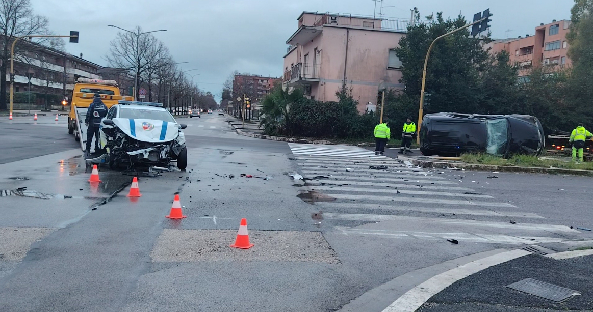 Una pattuglia della polizia locale all’inseguimento di uno scooter è rimasta coinvolta in un grave scontro avvenuto all’incrocio tra Viale Kennedy e viale Vespucci a Latina.