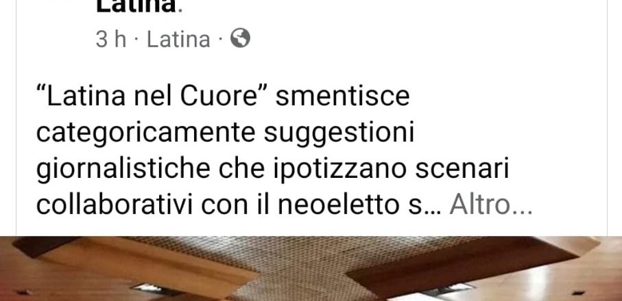 Si legge nel post rilanciato da Zaccheo: “Latina nel Cuore smentisce categoricamente suggestioni giornalistiche che ipotizzano scenari collaborativi con il sindaco Coletta“.