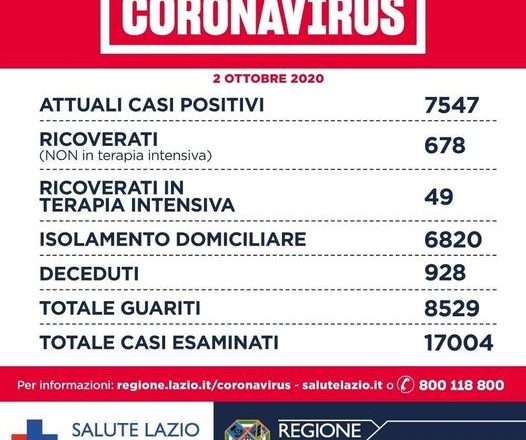 Restando alle province del Lazio Rieti e Viterbo stanno fronteggiando l’urto del covid con rispettivamente 10 e 8 nuovi contagi.