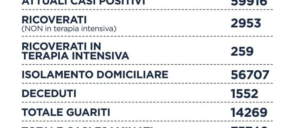 OGGI SU OLTRE 29 MILA TAMPONI NEL LAZIO (+2.575) SI REGISTRANO 2.686 CASI POSITIVI (+207), 49 I DECESSI (+11) E 301 I GUARITI (-143). IL RAPPORTO TRA POSITIVI E I TAMPONI RESTA INTORNO AL 9%. SONO 2.953 I RICOVERI (+40) E 259 IN TERAPIA INTENSIVA (+4). AUMENTANO I RICOVERI E LE TERAPIE INTENSIVE. Non bisogna proprio in questo momento abbassare la guardia. Rimane indispensabile raffreddare la curva dei contagi e mantenere il massimo rigore nei comportamenti. Rimane alta la pressione nella rete ospedaliera che sfiora quasi i 3 mila ricoveri COVID’. Nella Asl Roma 1 sono 442 i casi nelle ultime 24h e si tratta di casi isolati a domicilio o con link familiare o contatto di un caso già noto. Quarantaquattro sono ricoveri. Si registrano nove decessi di 67, 67, 74, 76, 78, 84, 85, 88 e 91 anni con patologie. Nella Asl Roma 2 sono 497 i casi nelle ultime 24h e si tratta di casi isolati a domicilio o con link familiare o contatto di un caso già noto. Centottanta i casi su segnalazione del medico di medicina generale. Si registrano tredici decessi di 51, 61, 70, 78, 78, 81, 83, 88, 88, 89, 89, 91 e 92 con patologie. Nella Asl Roma 3 sono 300 i casi nelle ultime 24h e si tratta di casi isolati a domicilio o con link familiare o contatto di un caso già noto. Si registrano tre decessi di 58, 78 e 81 anni con patologie. Nella Asl Roma 4 sono 103 i casi nelle ultime 24h e si tratta di casi isolati a domicilio o con link familiare o contatto di un caso già noto. Si registrano sei decessi di 50, 80, 86, 87, 93 e 94 anni con patologie. Nella Asl Roma 5 sono 401 i casi nelle ultime 24h e si tratta di casi isolati a domicilio o con link familiare o contatto di un caso già noto. Nella Asl Roma 6 sono 101 i casi nelle ultime 24h e si tratta di casi isolati a domicilio o con link familiare o contatto di un caso già noto. Dodici sono casi con link alla casa di riposo San Giuseppe a Montecompatri dove è in corso l’indagine epidemiologica. Si registrano cinque decessi di 57, 66, 75, 76 e 87 anni con patologie. Nelle province si registrano 842 casi e sono tredici i decessi nelle ultime 24h. Nella Asl di Latina sono 122 i nuovi casi e si tratta di casi isolati a domicilio o con link familiare o contatto di un caso già noto. Si registrano sette decessi di 63, 64, 64, 82, 87, 89 e 91 anni con patologie. Nella Asl di Frosinone si registrano 305 nuovi casi e si tratta di casi isolati a domicilio, contatti di un caso già noto o con link familiare. Si registra un decesso di 83 anni con patologie. Nella Asl di Viterbo si registrano 235 nuovi casi e si tratta di casi isolati a domicilio o con link familiare o contatto di un caso già noto. Si registrano due i decessi di 83 e 86 anni con patologie. Nella Asl di Rieti si registrano 180 casi e si tratta di casi isolati a domicilio o con link familiare o contatto di un caso già noto. Si registrano tre decessi