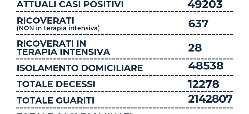 Nelle ultime 24 ore ci sono stati 13 ricoverati che fanno salire il totale a 637 i ricoverati, 28 le terapie intensive.