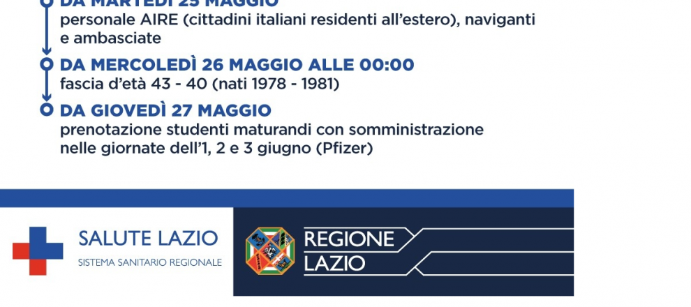 24 ore più tardi, ovvero, da mercoledì 26 maggio alle 00:00 si aprono le prenotazioni per una nuova fascia si età, quella 43/40 anni (nati 1978/1981).
