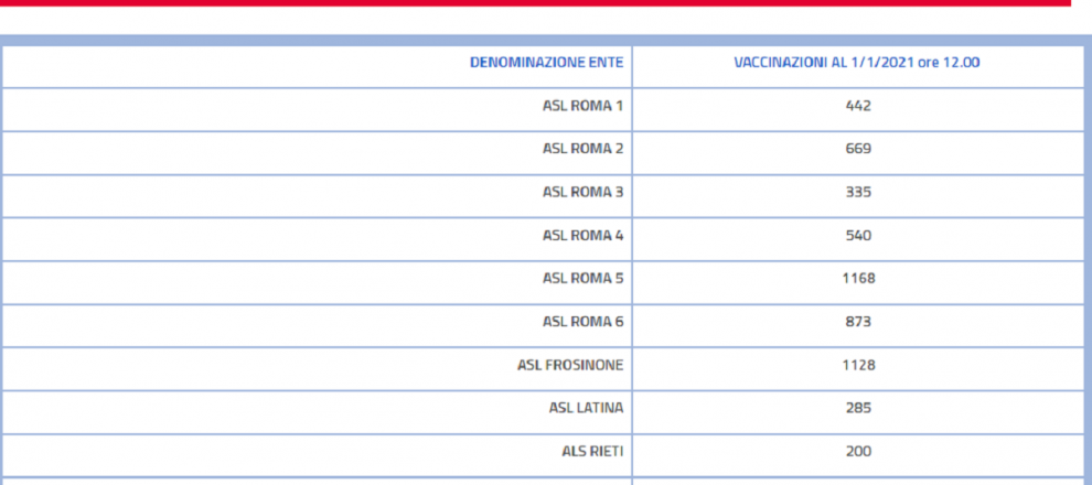 I dati relativi alle ore 12 del 1 gennaio ci dicono che nel Lazio le vaccinazioni anti covid sono 9428.