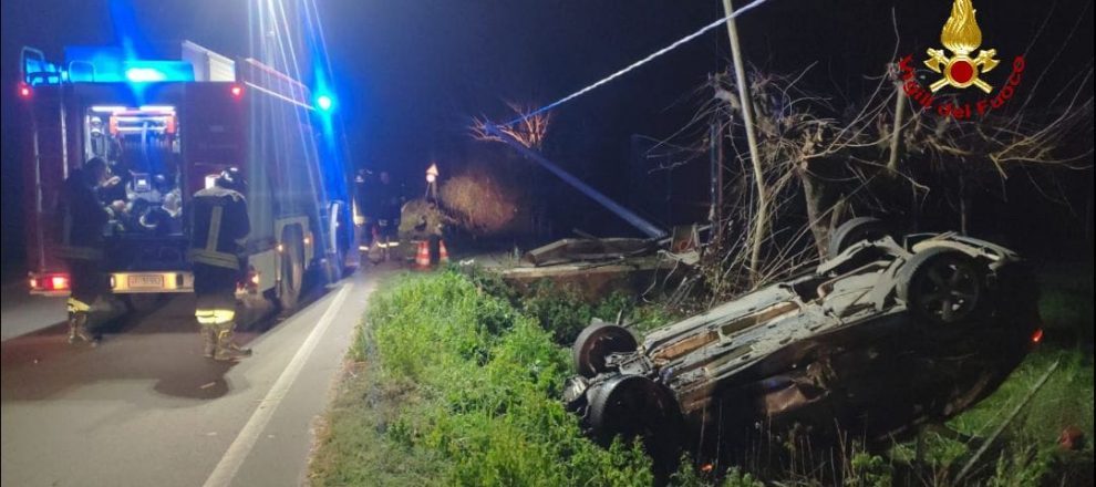 Quando i vigili del fuoco di Castelforte sono arrivati in via parchi ausente a Minturno hanno trovato una vettura capovolta fuori strada con nessuno al suo interno.