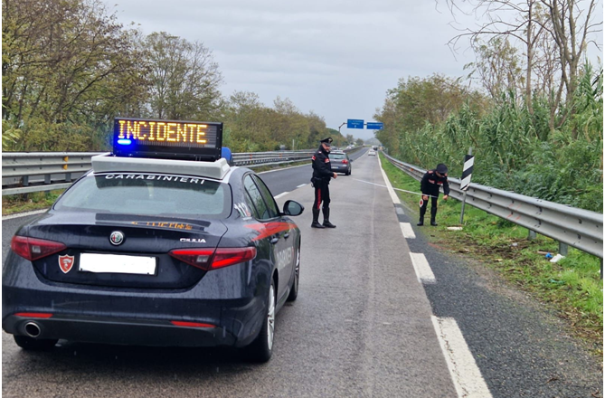 Intorno all’una e trenta della notte appena trascorsa, nel ter-ritorio di Minturno, al km.12 della variante ss.7 quater Formia Garigliano, si è verificato un incidente stradale mortale. Le cause sono in corso di accertamento da parte dei carabinieri della stazione di Minturno, intervenuti sul posto