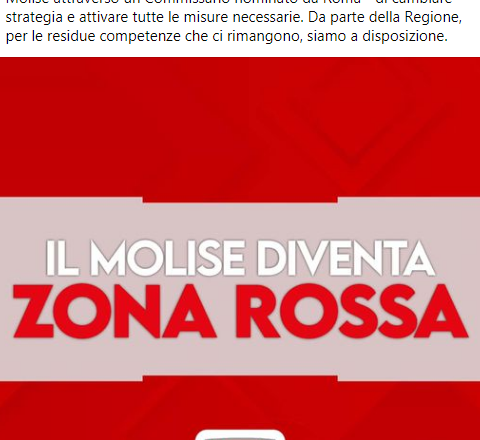 E’ stato lo stesso presidente della Regione Molise ha richiedere al Governo di istituire la zona rossa da lunedì 1 Marzo. Ed il Governo ha accolto l’istanza.