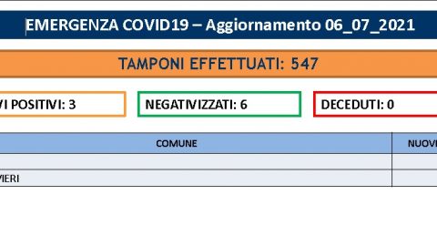 Tre positivi su 547 tamponi eseguiti. Non c’è più lo zero, ma i numeri comunque continuano a non essere preoccupanti