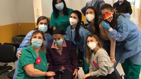 Frosinone – Vaccinata a 103 anni, foto con tutto il personale
