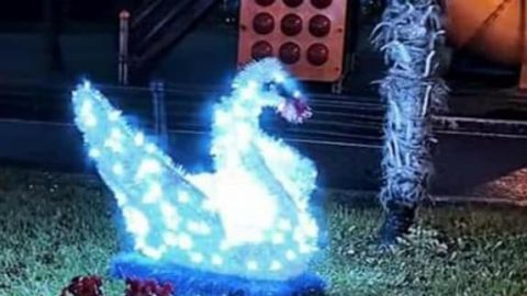 “Quanto avvenuto è semplicemente inqualificabile.C’è stato il furto di un cigno luminoso, posto solo poche ore fa, ad ornamento della