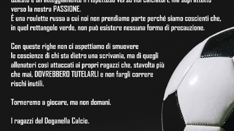 Niente gara di calcio contro il Priverno domenica mattina per il Doganella, squadra pontina del girone H prima categoria. L’annuncio