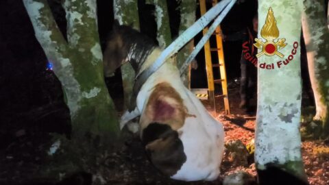 Vallepietra – Vigili del fuoco soccorrono cavallo incastrato tra due alberi
