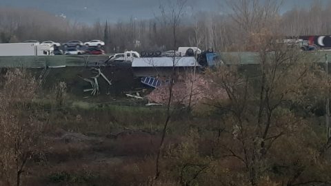 Ceprano – Tir esce di strada sull’A1 e si ribalta in una scarpata