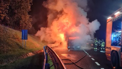 Un furgone Iveco che trasportava biancheria per il mercato ha preso fuoco nella notte lungo il tratto ciociaro di autostra-da,poco