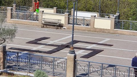 Una nottata di chiasso, con giovani in piazza fino a tardi: stamattina la scoperta. Una enorme svastica è comparsa nel