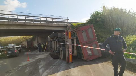 Un camion che proveniva dal porto di Gaeta e che stava trasportando 20 tonnellate di ferro a Ceprano, si è