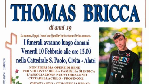 Questo pomeriggio, alle 15 l’ultimo saluto a Thomas Bricca. Solo ieri mattina la Procura di Roma ha firmato il nulla