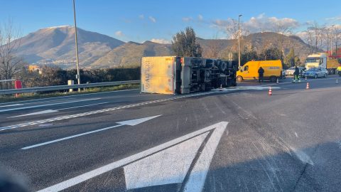 Il casello di Cassino è chiuso per un incidente avvenuto proprio a ridosso dell’uscita: un mezzo pesante che trasportava pezzi