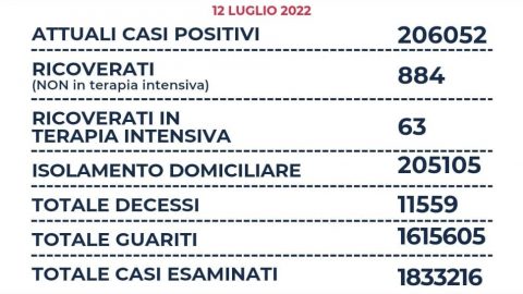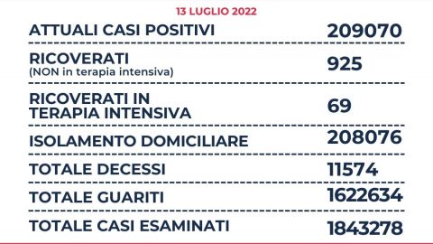Nel Lazio su 6.198 tamponi molecolari e 55.987 tamponi antigenici per un totale di 62.185 tamponi, si registrano 13.386 nuovi