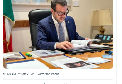 E’ il suo primo giorno da ministro delle infrastrutture e Matteo Salvini ci tiene ad affidare a due post su