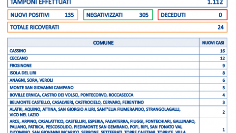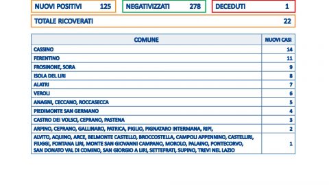 FROSINONE – 29 MAG – La settimana in provincia di Frosinone si chiude con uno dei dati piu’ bassi di