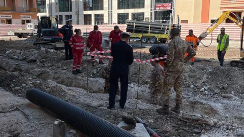 Un proiettile di mortaio è spuntato fuori durante gli scavi per il restyling di piazza Diamare in pieno centro a