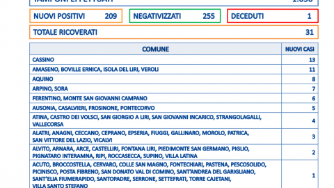 1699 positivi su poco più di 12 mila tamponi processati. Il rapporto è al 14 per cento. Scendono i ricoveri