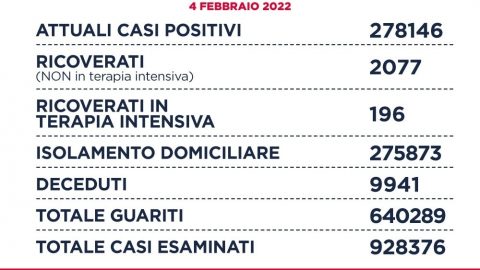 LATINA – 06 FEB – Continua il calo dei casi covid nel pontino, oggi sono 873 e due decessi, uno
