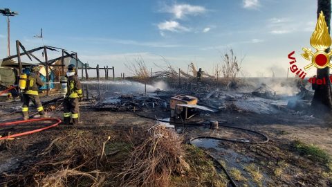 Un campeggio distrutto dalle fiamme, alcuni intossicati e tre squadre dei Vigili del Fuoco a lavoro per tutto il pomeriggio.