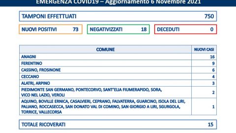 Dopo i dati preoccupanti di giovedì (84 positivi), calano i casi in provincia di Frosinone: sono 49 emersi su 1.070