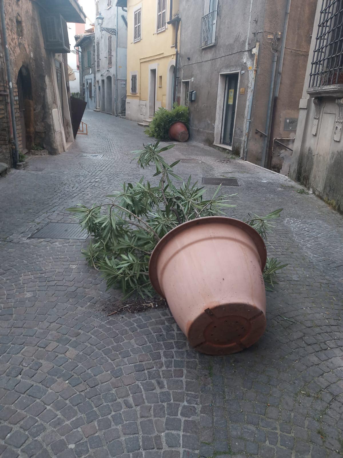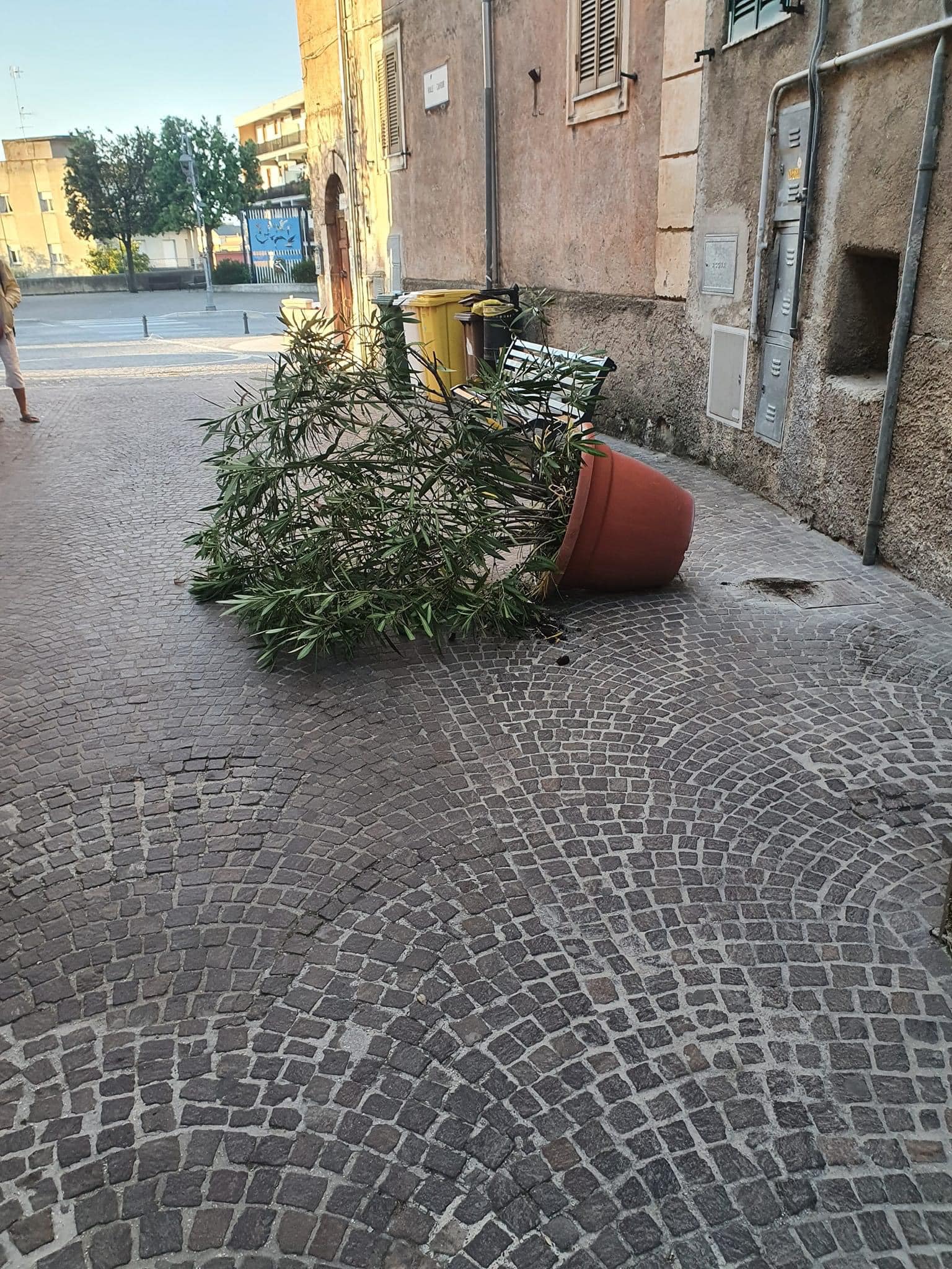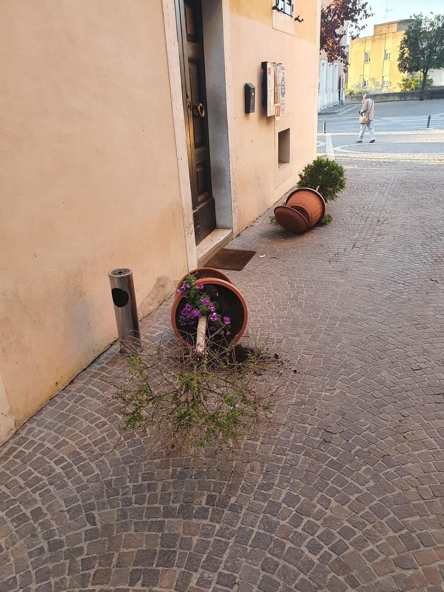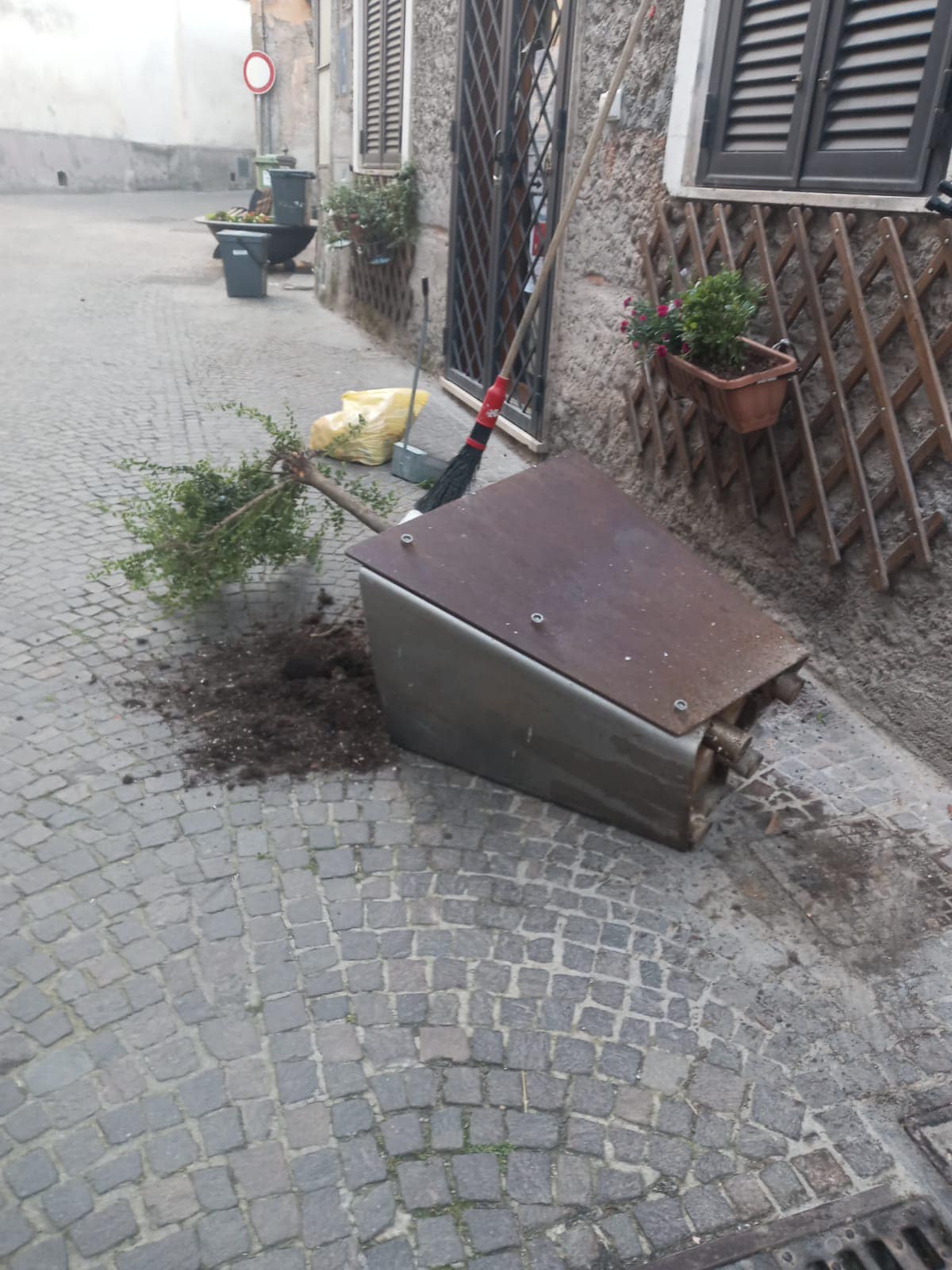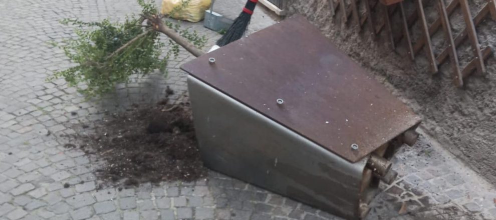 Immondizia sparsa nelle strade e fioriere ribaltate: dispetti, atti compiuti da qualche vandalo con poco senso civico.