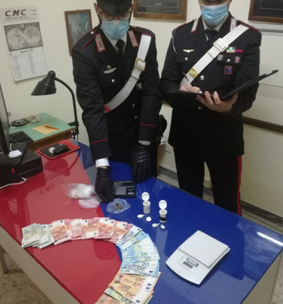 Durante la perquisizione dell’abitazione sono saltati fuori 5 grammi circa di droga, tra cocaina, hashish e marijuana, un bilancino di precisione e circa 1000 euro in contanti, stando alle accuse, frutto dell’attività di spaccio, ed anche due banconote da 50 euro che secondo i militari sono contraffatte.