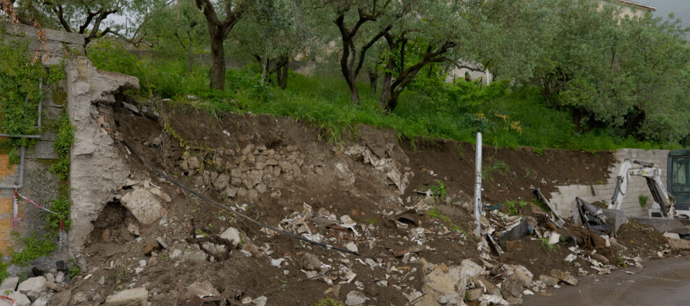 Due auto danneggiate ed un palo della luce tranciato. Sono queste le conseguenze del crollo di un muro di contenimento che si è registrato nella notte, intorno alle 2:30 a Piedimonte San Germano in via Pagliuchella. Sul posto, subito dopo l’allarme lanciato dai residenti, sono arrivati i carabinieri del radiomobile della compagnia di Cassino, che hanno subito bloccato il traffico vista la strada piena di detriti scaturiti dal crollo. Dopo qualche minuto sono intervenuti anche i vigili del fuoco che hanno provveduto a liberare la sede stradale e a rimuovere le auto ed il palo. Ora c’è da capire perché quel muro sia crollato.