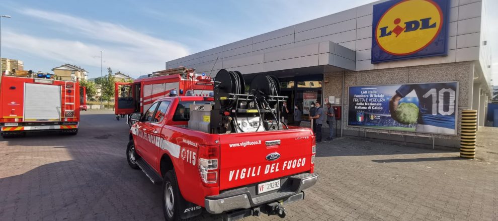 Paura nel pomeriggio a Pontecorvo per un incendio al supermercato Lidl divampato – secondo le prime ricostruzioni – a causa di un corto circuito di un frigo all’interno del negozio.