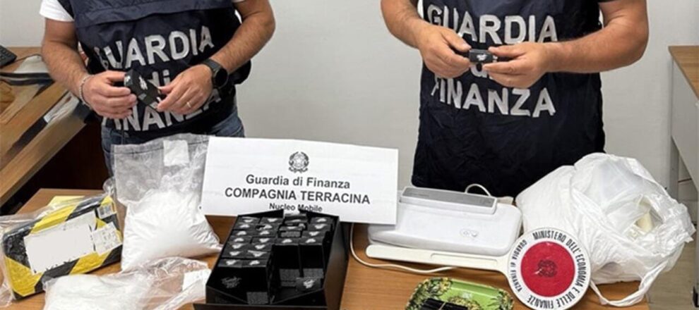 Operazione antidroga da parte dei finanzieri del Comando Provinciale di Latina, che hanno arrestato un uomo di Pontinia. L’uomo è stato trovato in possesso di tre chili di cocaina, cento grammi di hashish e quaranta dispositivi per l’inalazione di marijuana. Questi ultimi, sottolineano i finanzieri, permettevano di inalare lo stupefacente con un principio attivo, il THCP, un cannabinoide sintetizzato in laboratorio, con proprietà psicotrope più potenti di quelle naturali.