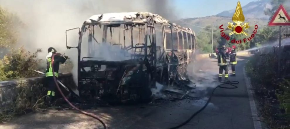 Un bus di trasporto locale avvolto dalle fiamme mentre percorreva via torretta Rocchigiana a Priverno. Attimi di paura quelli vissuti dall’autista del mezzo della compagnia di trasporto regionale, solo al momento del rogo. E’ stato lui a lanciare l’allarme. Si è reso conto delle fiamme ed ha accostato a bordo strada. Nonostante l’intervento immediato dei vigili del fuoco di Latina, dell’autobus non è rimasto nulla. Il mezzo è andato completamente distrutto. Secondo un primo sopralluogo le fiamme si sono sprigionate per cause accidentali. Un’avaria al vano motore da cui si sarebbe sprigionato il rogo che poteva avere conseguenze ben più gravi se a bordo del pullman ci fossero stati passeggeri.