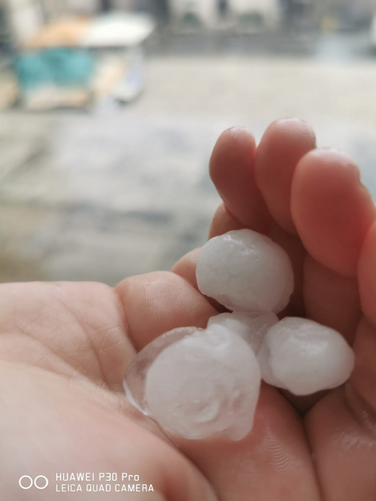 Chicchi di grandine, anche di grandi proporzioni come ci mostrano anche le immagini, si sono abbattuti sulla città. Il fenomeno è durato almeno 20 minuti. Le persone presenti hanno dovuto trovare riparo in qualche modo.