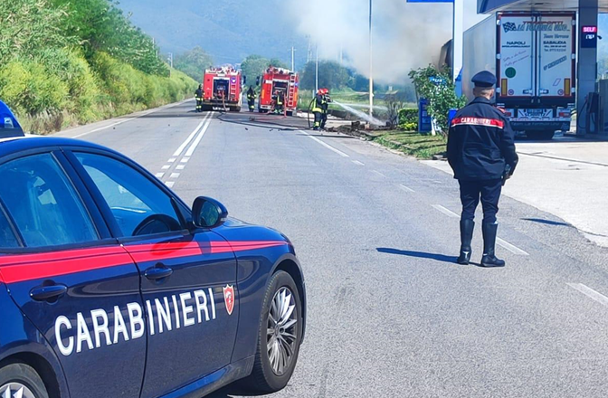 Nell’area di servizio c’erano anche molti altri clienti: all’i-nizio hanno provato a spegnere il fuoco con gli estintori, ma subito è stato chiaro il pericolo e quindi la necessità di chia-mare i vigili del fuoco. Sul posto sono intervenuti i carabinie-ri della sezione radiomobile della compagnia di Terracina fino a quando la situazione non è tornata in sicurezza.